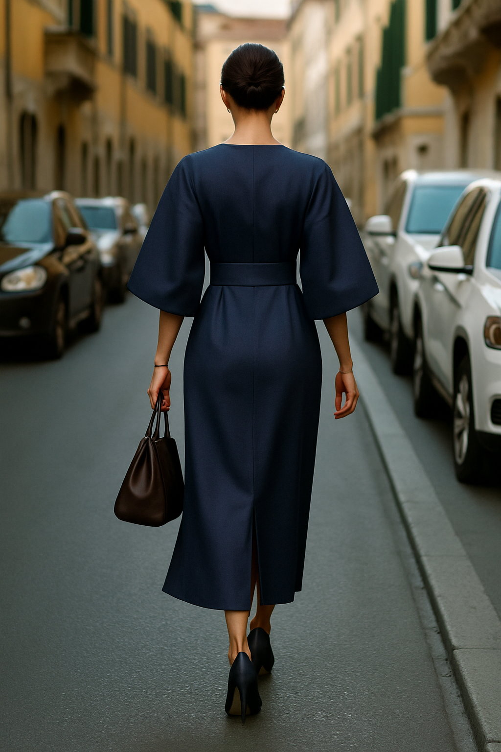 Soraya Midi Jurk met Wijde Mouwen - Elegant en Chic