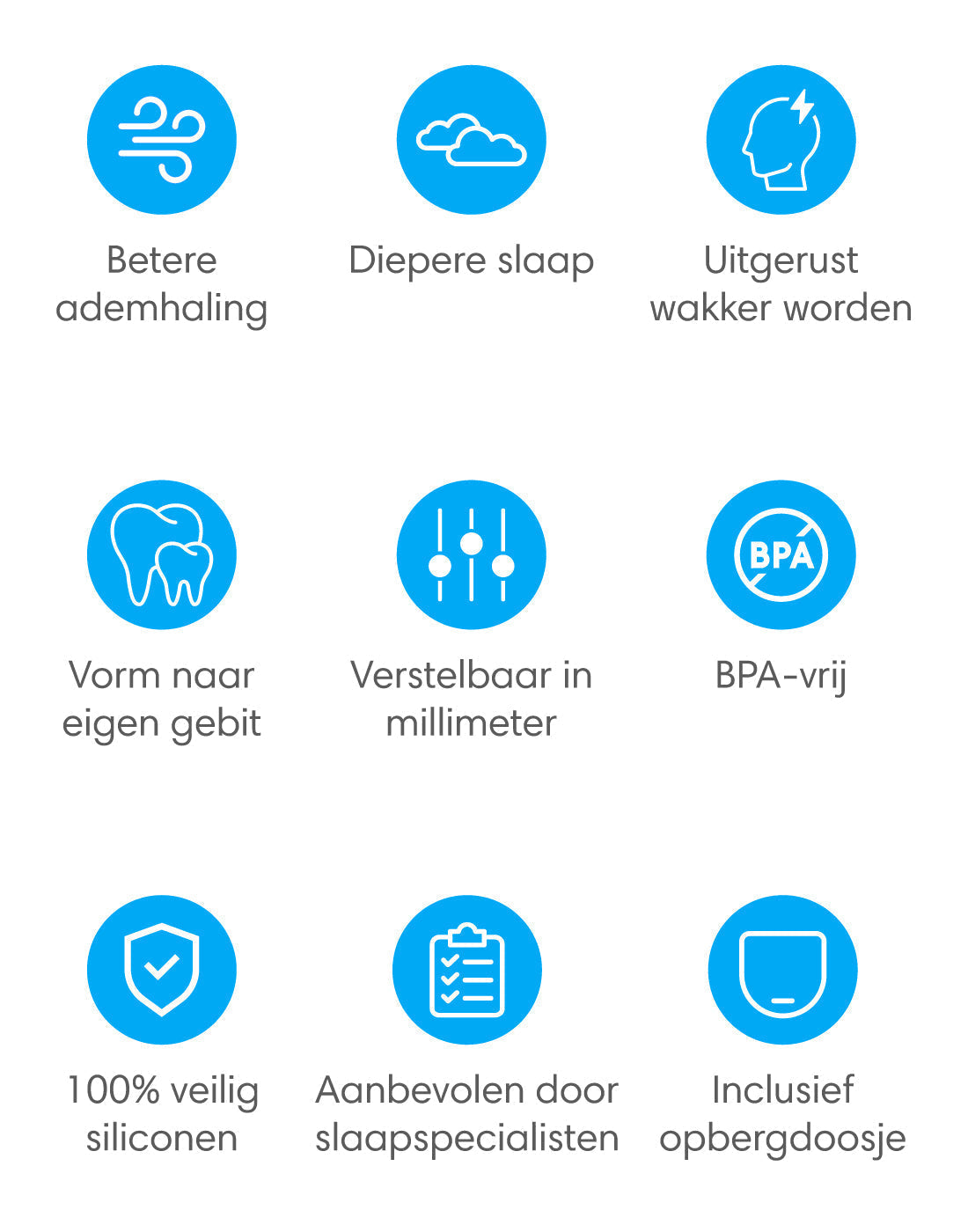 • Snurkpreventie: Houdt luchtwegen open door subtiele kaakaanpassing, ideaal om snurken te verminderen.